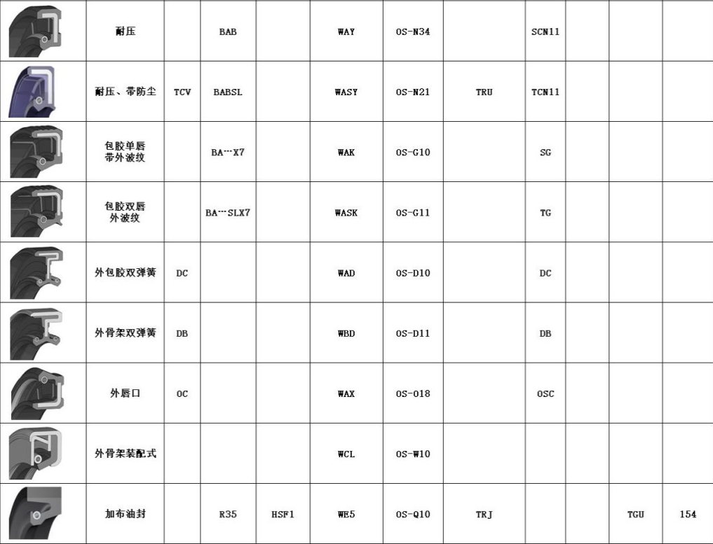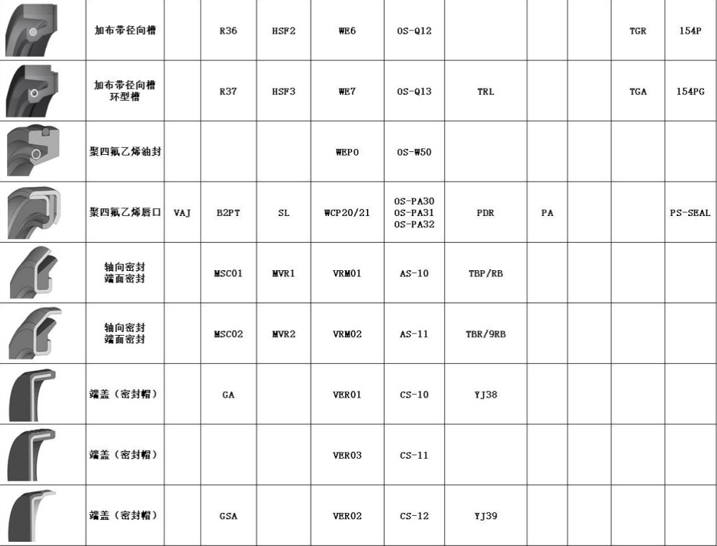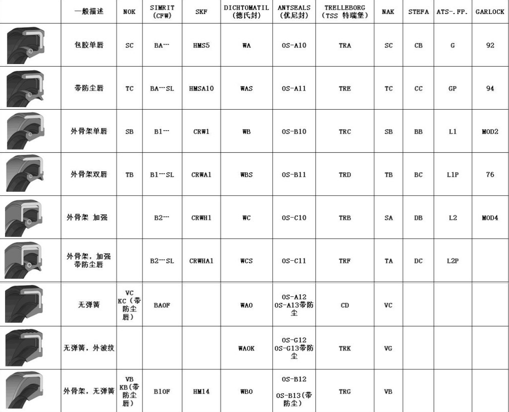 常用品牌进口骨架油封互换表